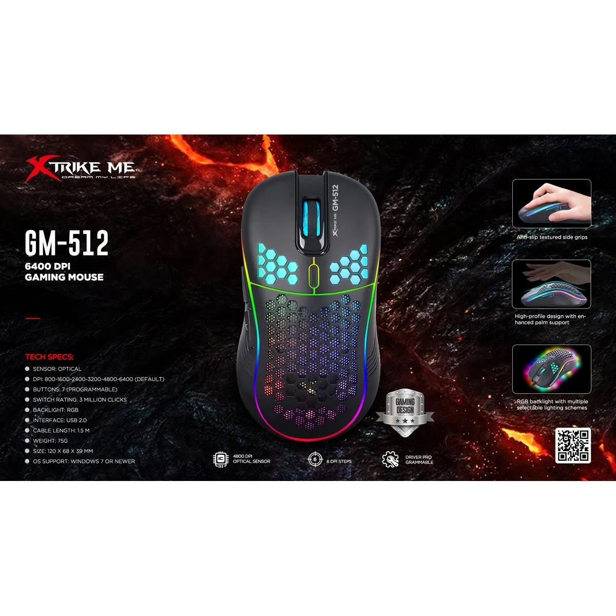 Souris Gamer XTRIKE GM-512 | 7 Boutons Rétro-Éclairés Et 6400 DPI